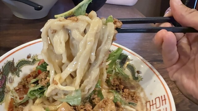 一口すすると、濃厚でクリーミーな胡麻のコクが舌を包み込み、同時にピリッとした痺れが口の中に広がる。