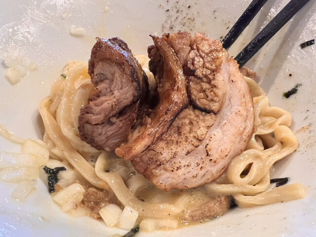 濃厚な豚骨に塩ダレが相まって、震える美味さ。