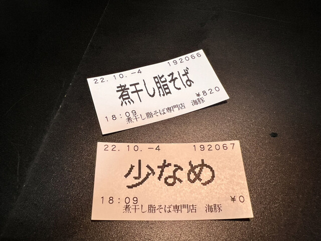 二郎系の麺、いわゆるオーション麺ですが、麺自体の美味しさも際立ってますが、汁無しにしては多めの煮干しのスープもハイレベルで、混ぜてる時に立ち上がる煮干しの香りを纏った湯気からしてもう美味しいです。