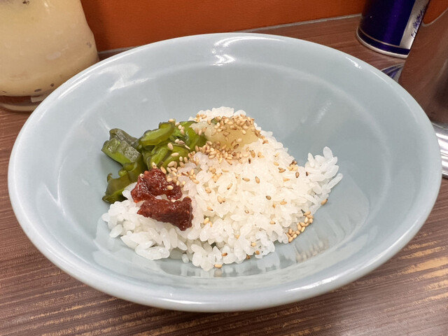 ライスは大盛りまで無料で、川口店限定で、武蔵盛→1.0kg、武蔵山→1.5kgまで無料。ライスおかわり自由。