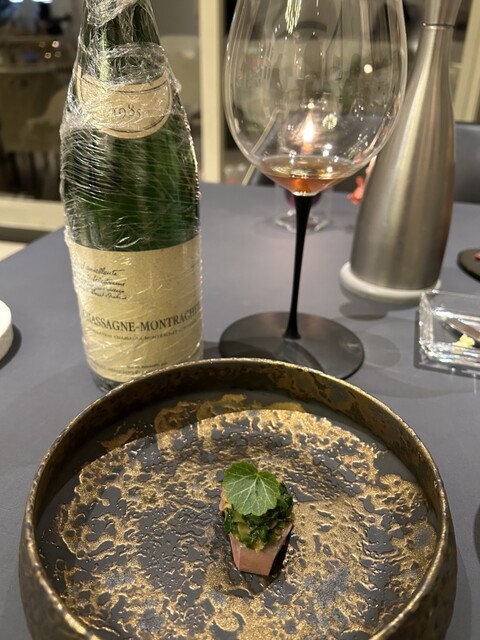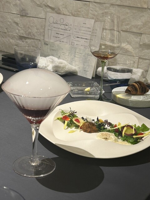 千葉県の佐倉駅から徒歩30分のところにある大好きなレストラン。コースは一種類で、ペアリングはノンアルコールとアルコールがあります。ここよりも素晴らしいペアリングはなかなか知りません。アルコールは、シェフの奥様が合わせるお酒はお料理にバチっとハマっており、完璧なマリアージュ。さらにここでしか体験できないお酒や、なかなか飲めない高額なワインや古酒、更に入手困難なお酒まで... 目玉ワインは、今回はラフィットロートシルト、前回はオーパスワンをいただきました。コースだけでも満足度抜群で感動できるのですが、ペアリングをつけると魅力が爆発します。こちらのお店での体験の余韻がすごいです。コースと同額程度ですが、ペアリングは是非つけて欲しいです。ノンアルコールも、ここよりもこだわりが詰まっているお店を知りません。事前予約が必須なのも納得。お茶ペアリングとか、お茶ベースのものとか出してるお店結構ありますが、こちらはスープやらカクテルやら...領域がとにかく広くて、料理に合うものを出そうという気持ちがとても伝わるラインナップです。食材は千葉にこだわっており、欲しいと思ったものは自分で探しに(とりに)行くシェフです。お料理の説明は時間の都合上早口ですが、ストーリーがしっかりあって、なんでこれを作ったのか、どんなこだわりがあるのか、シェフ自らしっかり伝えてくれます。一皿一皿に素敵なストーリーがあって聞き入ってしまいますが、説明が丁寧すぎるときは食べはじめても多分大丈夫です。笑品数が多すぎるのでメニュー書くの躊躇ってましたが、アルコールもノンアルコールもどっちもメモしたのでついに記載です〜笑ドリンクは上段がアルコール、下段がノンアルコールです。同席者がノンアルコールのペアリングだったので気になったものはちょっといただいてましたが、アルコールとノンアルコールを比べると、中身は全然違うけれども香りのアプローチの仕方が似ているドリンクが多い気がしました。以下メニュー・梅酒、桜の葉、蚕のフンの自家製酒→フンもお茶ぽい香りだったので、桜餅みたいなお酒でした。・いちごスパイスコーラ ×・~シェフからの最初の贈り物~ 定点トマト→いつも出てくるトマト飴。モヤイさんが可愛い笑・木戸錦 20年の古酒→マッシュルームに古酒が合う!!・鯵のスープ ×・時間温度水分時間軸、温度軸、水分軸でマッシュルームを表現。温かいもの冷たいもの、生のもの、発酵シート。マッシュルームの味がとても強いです。・Il Poggiarello / La Malvagia→マルヴァジアの華やかなアロマ。ライチ香・ローリエライチジャスミン ×・(アドリブ)オオスズメバチのフリット、バナナ・Zidarich / Vitovska 2017・Chardonnayジュース、ブナ ×・(アドリブ)伊勢海老の脚肉、ホワイトチョコ、塩麹マリネ、伊勢海老の頭のシート、カキドオシ→伊勢海老の生チョコって言ってました。お菓子のゆかりみたいな海老の香りがギュッと詰まった一品。・Chateau Lafite Rothschild 1985→ラフィット... 贅沢すぎます♡目玉の超有名ワインが出てくるのですが、以前はオーパスワンやムートンが出てました。今回はラフィット!!ボルドーの中では柔らかさがあるとおもいます。・松、竹、梅 ×・冬の恵み 真鴨のソテー、ネギ、ナッツと赤ワインといちじくの葉っぱオイル→スギ流鴨ネギ。ナッツのペーストがとっても美味しかったです。・バター→飲み物ではないけど、合うものならばペアリングと呼べるので、と。ペアリングをつけた人にだけ届きます。モヤイに乗っかってるの可愛い。笑 ×・トリュフチーズパン→いつも普通のチーズパンなのにトリュフが乗ってましたー!!!贅沢♡♡バターがジュワッと。・三井の寿 山田錦・洋梨、緑茶 微発泡ドリンク ×・(アドリブ)肝ソースを塗りながら焼いた鰻、山ワサビ・山崎18年 水割り→ウイスキー苦手なので最初の方に外して欲しい旨お伝えしたのですが、山崎川く・どくだみ、フランボワーズ ×・Sugiのブラックサンダーフォアグラの油分、ヤマグリ、アマゾンカカオ・Marc Deschamps / Pouilly-Fumé Vinealis→アルコール度数14.5%としっかり。鱧の味が強くて良きマリアージュ!・黄色パプリカ、ブラッドオレンジ ×・鱧鱧ガストロバック、マカダミアナッツ→これ本当に美味しくて大好きです。ガストロバック効果で鱧の甘味がぎゅっと詰まってます。・Raoul Clerget / Chassagne-Montrachet 1985→だいぶ褐色で古酒特有の味わい。・カベルネソーヴィニヨンのジュース、ドライプルーン、くるみ ×・からの恵み鴨レバー、佐倉のニラ、生姜→スギ流レバニラ。・no.6 fermen type・梅とさくらのシロップ、海苔 ×・GV鰹ガストロバック鰹、ビーツ、クリームチーズ・うど、枇杷のお酒・蚕のフンのお茶 ×・(アドリブ)穴熊のしゃぶしゃぶ、ヤマドリダケ、もろそば十割・Mattia Vezzola / Metodo Classico Brut →メインはトリプルペアリングとなります。爽やかなタイプのスパークリングワインと塩味がマッチ。・あざみ酒