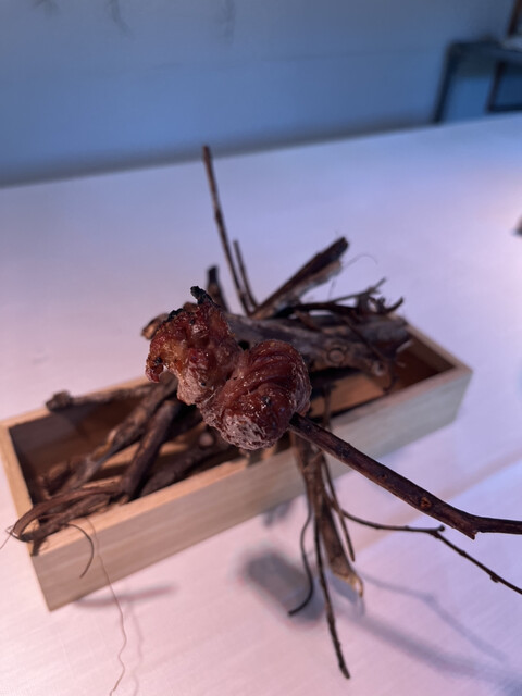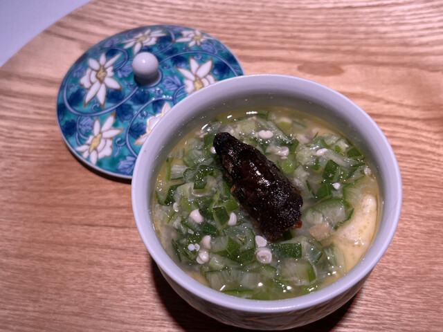 →すっぽんやカエルがジューシーすぎてびっくり!カエルは紹興酒に漬け込んでいて味が染み込んでて美味しかったです。折り紙シリーズかなり小さくて器用すぎます、シェフは凝り性らしいです。笑