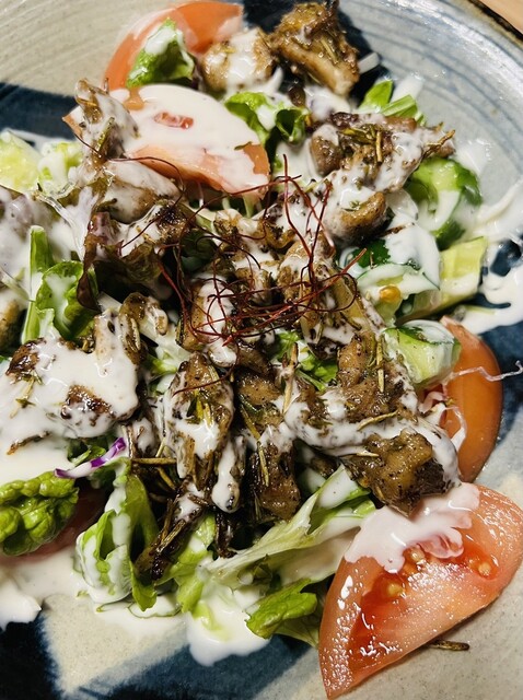 この日特に印象に残ったのは、レバ刺しとカキです。まずレバ刺しは、驚くほど新鮮で臭みが一切なく、口に入れた瞬間にとろけるような食感。味付けが、素材の良さを引き立てていました。濃厚でありながらも後味はさっぱりしていて、これだけを目当てに通いたくなるほどの美味しさです。