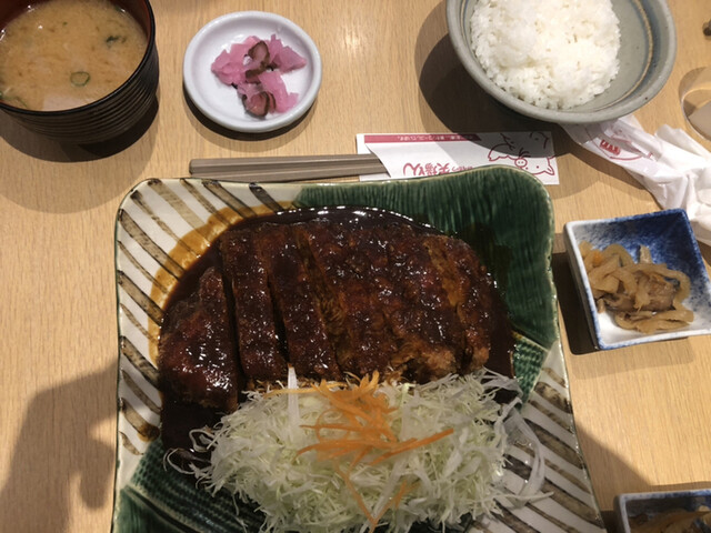 豚カツが来るとその場でソースをたっぷりかけてくれます。だからサクサク感ありボリュームもあり満足・満足。ソースいっぱいでも全然くどくない。また食べたいと思いました。