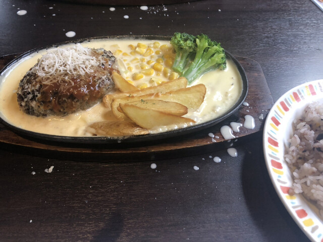 半生が苦手でしたのでクラシックハンバーグを注文しました。時間がかかると言われましたがそんなに待たされた感じはしませでした。とろとろチーズは店員さんがその場で鉄板ギリギリぐらいまでかけてくれました。その上に粉チーズをとチーズたっぷり。チーズはトロッとというよりサラッとした感じですが味はすっごく濃厚で美味しかったです。最後鉄板に残ったチーズにご飯を混ぜてリゾット風に食べました。ご飯は無料でおかわりできます。