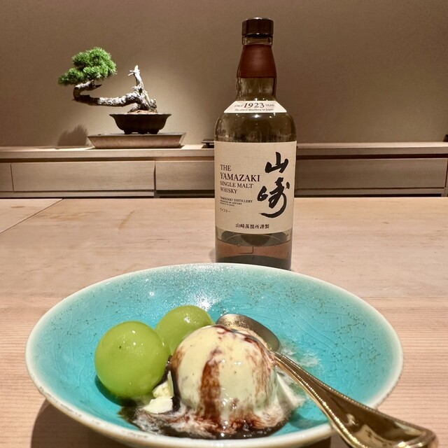 アイスクリームに山崎ウイスキーかハチミツをかけて