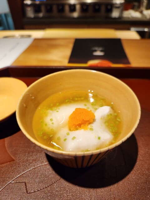 味付けしておらず、先ずは出汁を半分位飲んでいる内に、白甘鯛の塩味と旨味が段々広がってくる