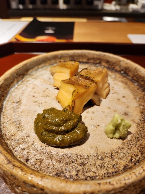 手前は鮑の肝と卵黄を練り上げたもの✨