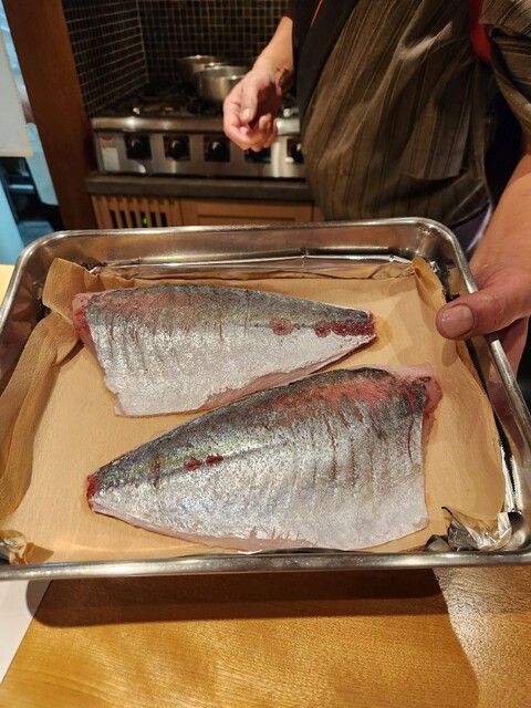 塩鰆、自家製からすみパウダー、海苔の醤油洗いで。