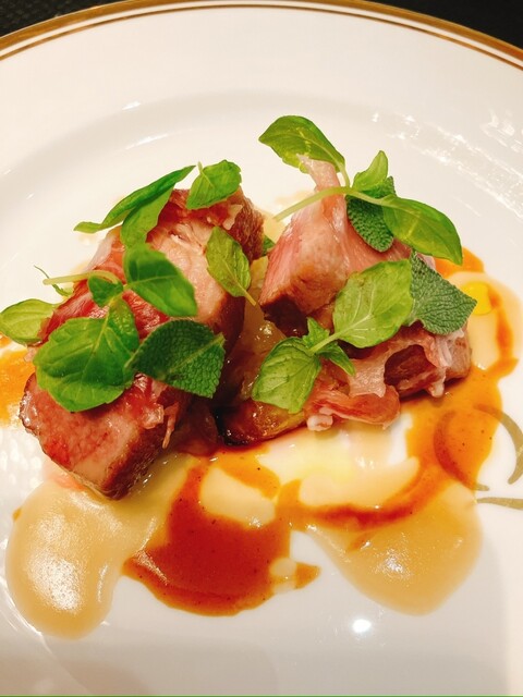 お肉料理は高原黒牛イチボのローストをお願いして、お肉が美味しいのはもちろんですが添えてあるじゃがいもがさつまいもみたいにめちゃくちゃ甘いのが印象的でした(*^^*)