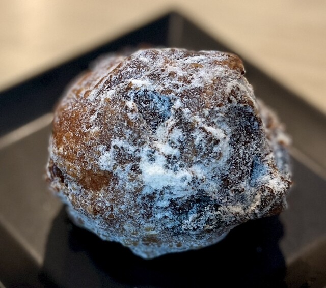 揚げられたシュー生地に中にラムレーズンが入っていて、コク深い甘さと意外な酸味が楽しい味。