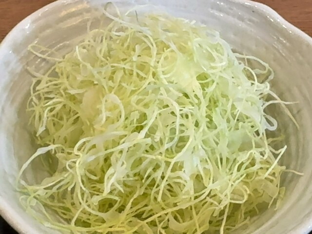 また、付け合わせのみそ汁や千切りキャベツ、お新香もどれも全て美味しく、特にお新香は塩加減や沢庵のような硬さ具合で非常に美味しい食感を楽しむことが出来た(*´ω`)