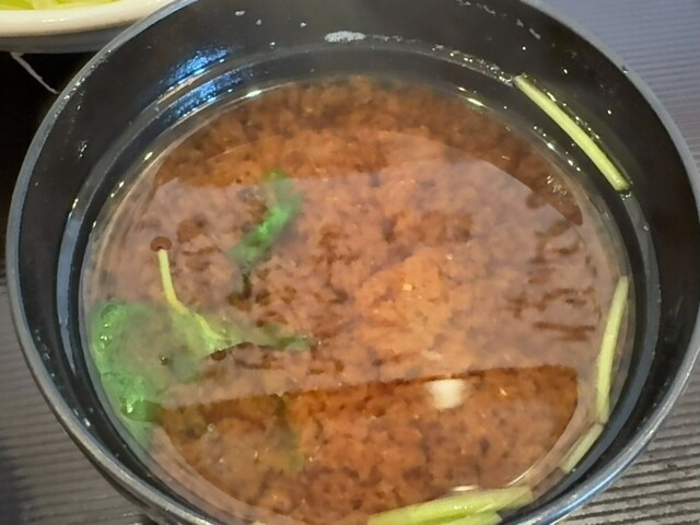 まずは手始めにトッピングの大根おろしに醤油をちょろっとかけて食べ、全く辛さを感じる事なく、むしろサッパリとした風味のように感じ、これは豚カツとの相性が良い事も納得できる(*'▽')