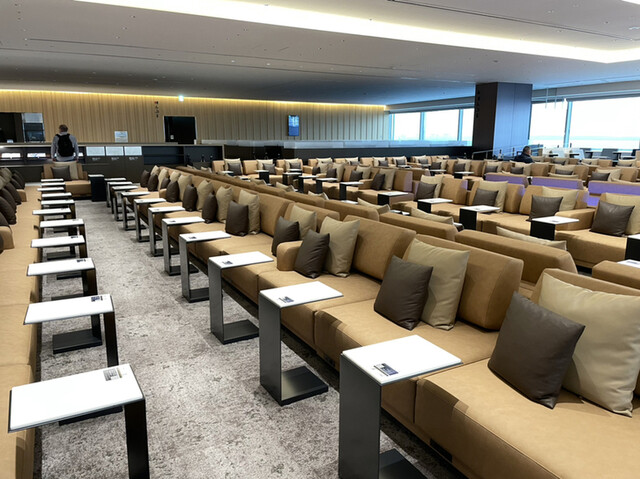 多分世界一じゃないかと思うくらいのラウンジスペース。食事、ワイン、日本酒、ビールの飲み食べ放題で最高です(๑>◡<๑)