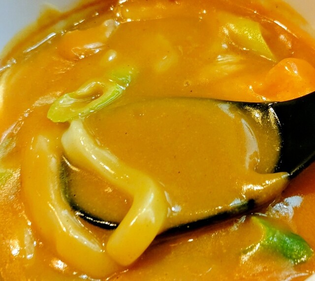 もっちりもちもちの太麺にとろりんカレーが絡みます〜美味しいです〜♥