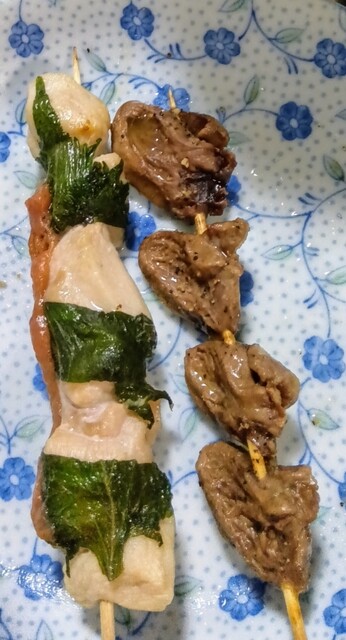 焼き鳥、もも・梅しそ・豚ねぎま・ハツに砂肝!!全部100円❢❣