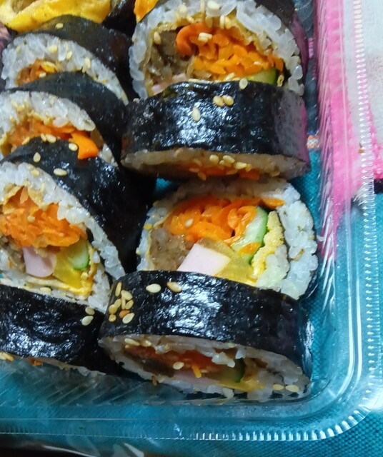 カルビキンパ、ノーマルキンパ、玉子焼キンパ購入です〜\(๑╹◡╹๑)ノ♬