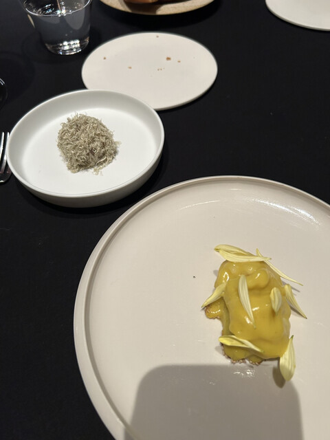 サービスの方(囲碁将棋文田似)が丁寧に料理の説明をしてくれるがそれでも味の想像が全くつかないのは人生で初めて。ほんでめっちゃ美味しい。