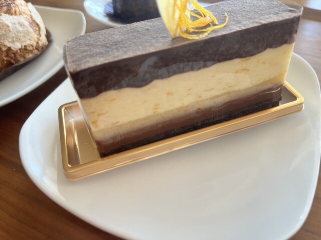 ケーキは、チョコレートのテリーヌ部分がこってりとしつつ重すぎず、オレンジとよくあっていました。甘さとサイズも抑えめなので丁度良いです。