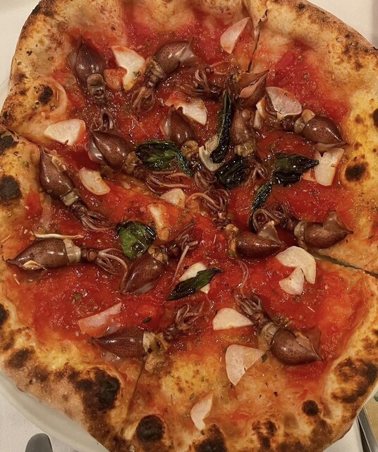 太刀魚のピザとポルチーニ茸ピザのハーフ&ハ