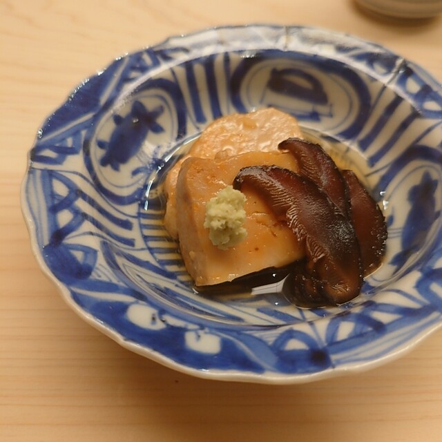 鮨屋で鱶鰭が出されたのは生涯2度目ですが、こちらのアレンジもサクサクコリコリで面白美味しい。