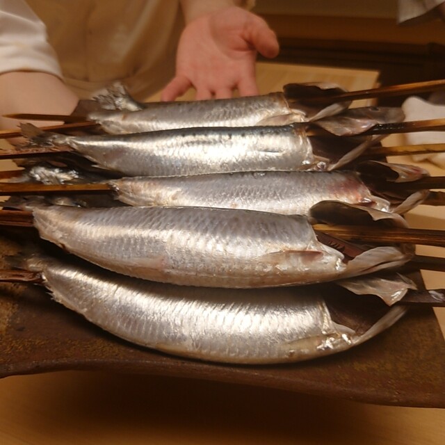 ここで目の前には串に刺された見事な鰯が。