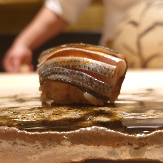 小鰭は海老の朧を挟んで。