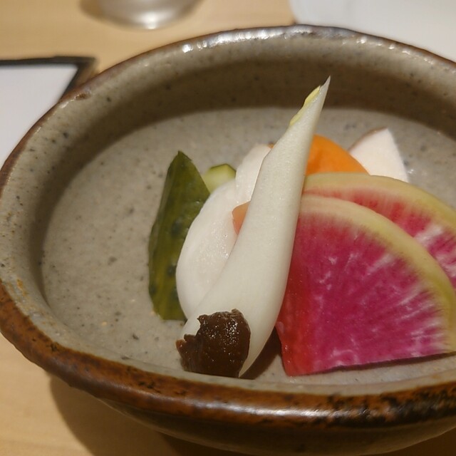 山芋、蕪、紅芯大根、胡瓜、人参、エシャレットでさっぱりめの漬け具合。