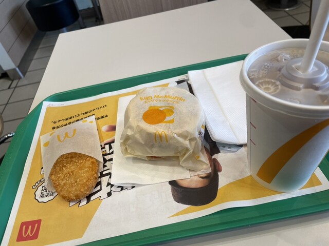 エッグマックマフィンのセットにしたら卵が焼けてないので席に着いて待ちました。
