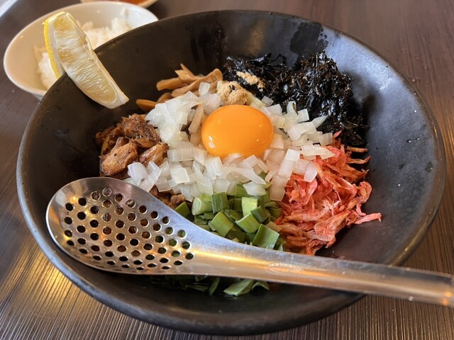 こちらの限定麺には小ライスが付いてきますが、食べたあとでもうひとつ追加して小ライスお代わりしてしまいました。