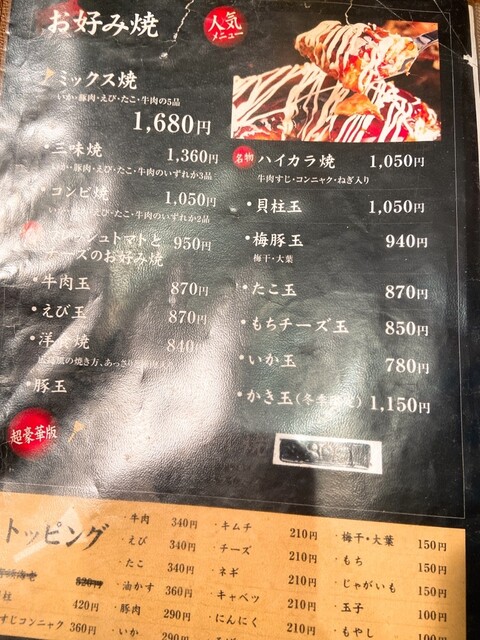 海のごっちゃ焼きと焼きそばキムチ、お好み焼きととん平を注文⁽⁽ଘ( ˊᵕˋ )ଓ⁾⁾