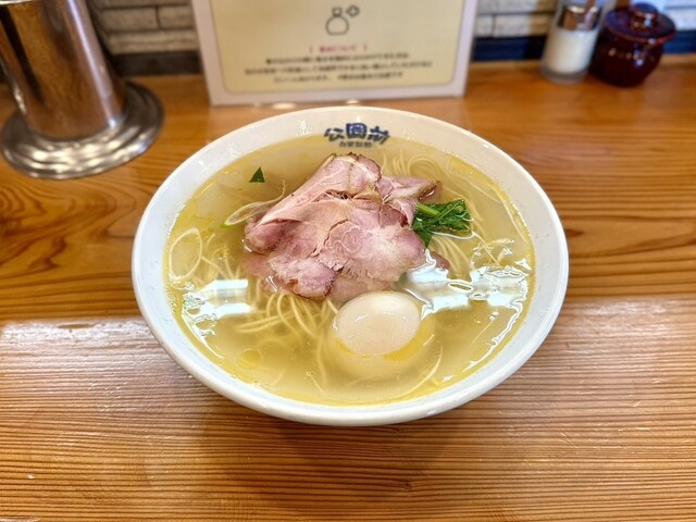 魚介出汁の旨味が効いた最後まで飽きの来ない塩味、ツルツルシルキーなのにコシを感じる美味しい麺、火入れ加減が絶妙な吊るし焼豚と味玉と全体的にレベルが高く安定感抜群で大好きな一杯です。