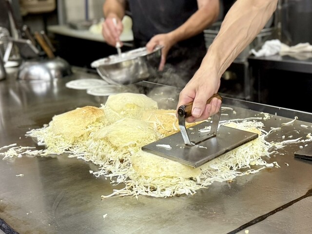 目の前で作ってくれる出来立てのお好み焼きと焼きそばはどちらもシンプルながら大変美味しかったです。