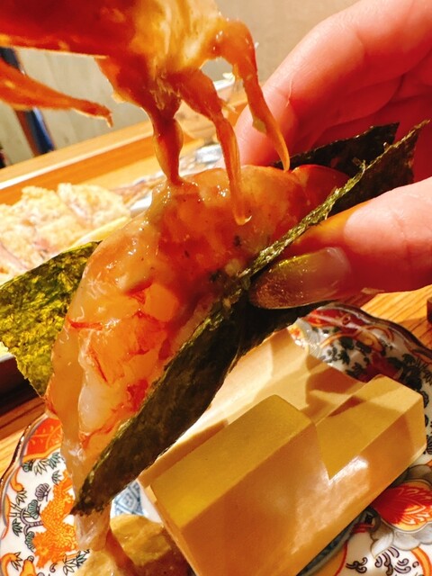 《寿司ドックの赤エビ》や《こぼれる中トロ鉄火巻き》は、