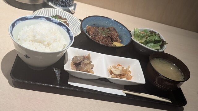 間違い無く俺の中ではベスト10上位入り!!この日は、日替わりのローストビーフ・煮込み・レバーフライ・豚ナンコツ煮の中から2品チョイスする「きんもくせいランチ(1,000円)」ホカホカで得も言われ白米が凄い!!全く臭みなく独自のタレが掛かったレバーフライ!!デミグラスソースで煮込まれた唯一無二の軟骨!!減点の要素無し!!!このレベルの料理が、この価格に驚愕!心も胃袋も癒されて大満足✩✩✩