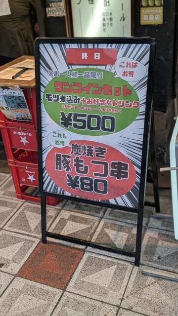 通天閣から徒歩3分で行ける最高の立ち飲み屋さんです♪従業員さんは女子で柔らかい対応も素晴らしかったです♪お勧めは、まずはお得な「ワンコインセット(500円)」ドリンク&看板メニューの煮込みが付いて超リーズナブル!!刺激の少ないキムチもお勧め♪てか、何を食べても旨いヤバい!!希少部位の「チレ刺し(500円)」は衝撃的でした♪