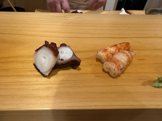 鯛でしたかね。握りは全て、醤油が塗られてます
