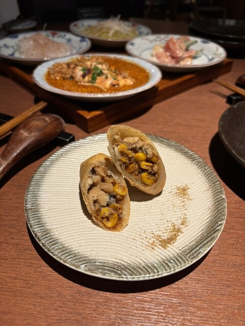 夏限定の穴子とトウモロコシの春巻きは、初めての組合せでしたがサクサク衣、コーン、穴子に山椒がマッチしてこれまた美味しい!!!夏を感じる逸品です。