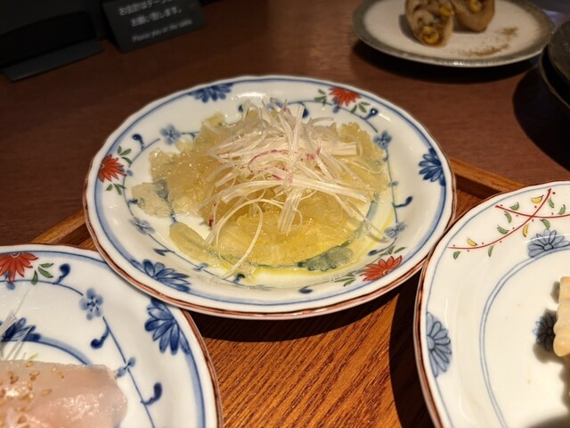 そしてクラゲの塩檸檬漬け、コリコリ食感の中にレモンが香って楽しい〜箸止まらない。
