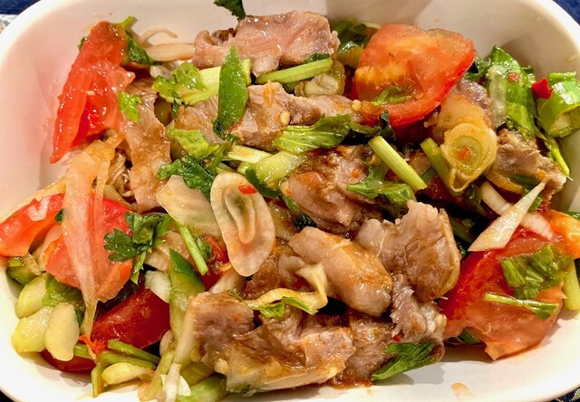 いただきますのあとは、どのお料理も本当においしくて、家族みんなでしばし言葉も発せず貪り食べるよう。今回とくに美味だったのはヤムヌア。牛肉もトマトもたっぷり入っていて、ナムプラーで味付けしたお肉ってなんでこんなに旨いのか!感激の味でした。食材価格の高騰は止まるところがない様に思えますが、このお店があるから学大界隈が好き、そんな風に思えるこちらのお店、声を大にして応援したいです。