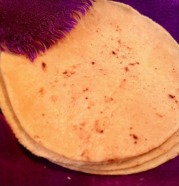 紫色の布とのコントラストが美しトルティーヤ