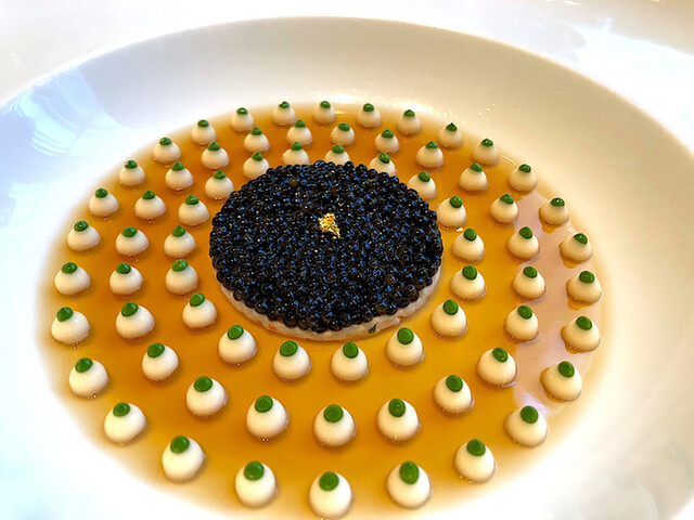 特にスペシャリテのキャビアはもはや芸術作品。(蟹を使っているので甲殻類アレルギーの方には提供されません。)