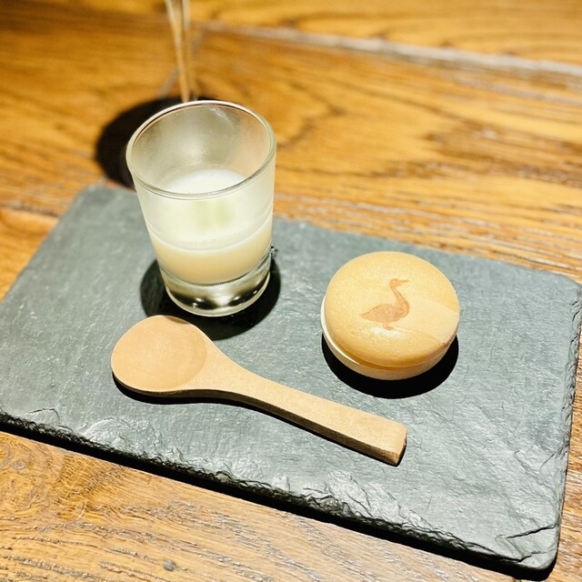 玉ねぎの鴨出汁スープと鴨のレバームース