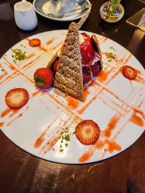 限定の苺ミルフィーユ...サクサクッ!ゲレンデお塩パイとあんまい苺とクリーム。