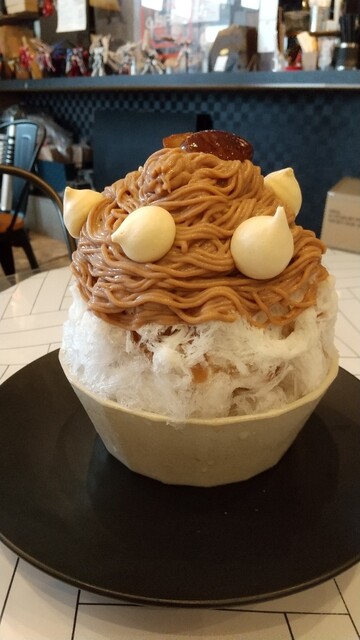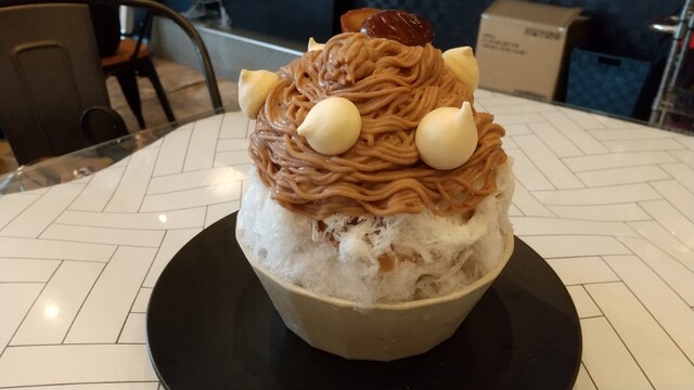 ネーミングのとおり抹茶大福の様なかき氷ですが、その発想が凄い✨
