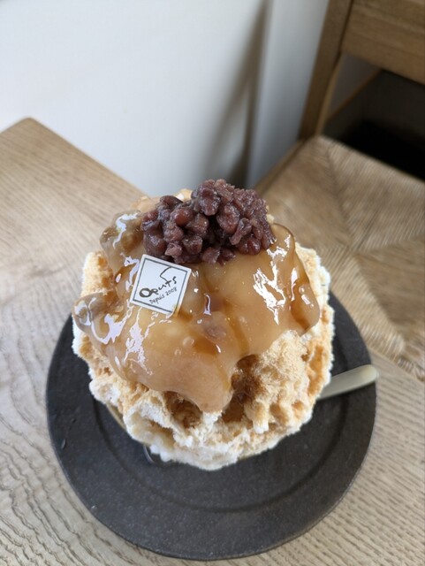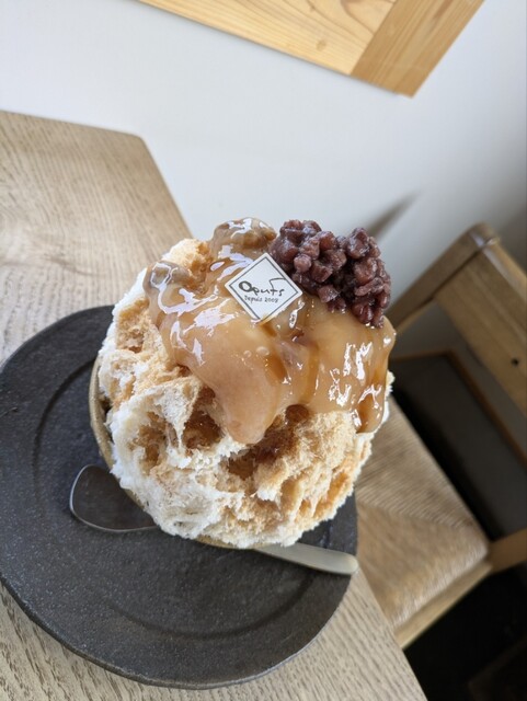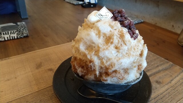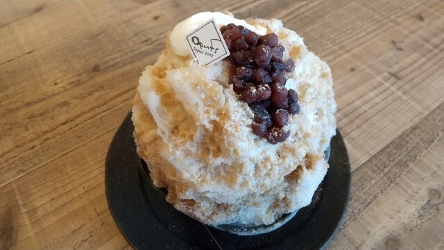 自家製の黒糖くるみ餅と塩小豆でまるで和菓子の様なかき氷です♪