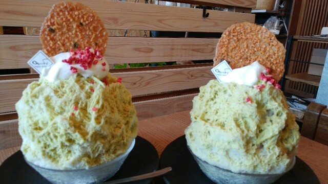 「抹茶」「チョコレート」「イチゴ」「マンゴー」「キウイ」「練乳」「塩小豆」「みぞれ」と味は、とても豊富です。