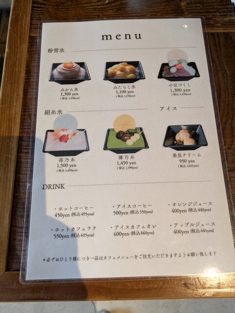 甘音屋さんのかき氷は、絹糸氷と粉雪氷があります