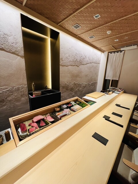 エレベーター降りたらすぐに暖簾があり受付の人がカウンター席まで丁寧に案内してくれました。