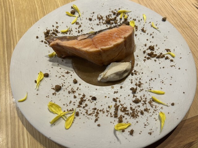 魚は分厚いサーモンと伝助穴子、薪焼の塊肉、パスタは2種、そしてエンドレス生ハム、、、!